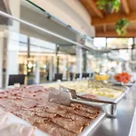 Restoran açık büfe kahvaltı servis eder. Ayrıca bir pool bar da bulunmaktadır.